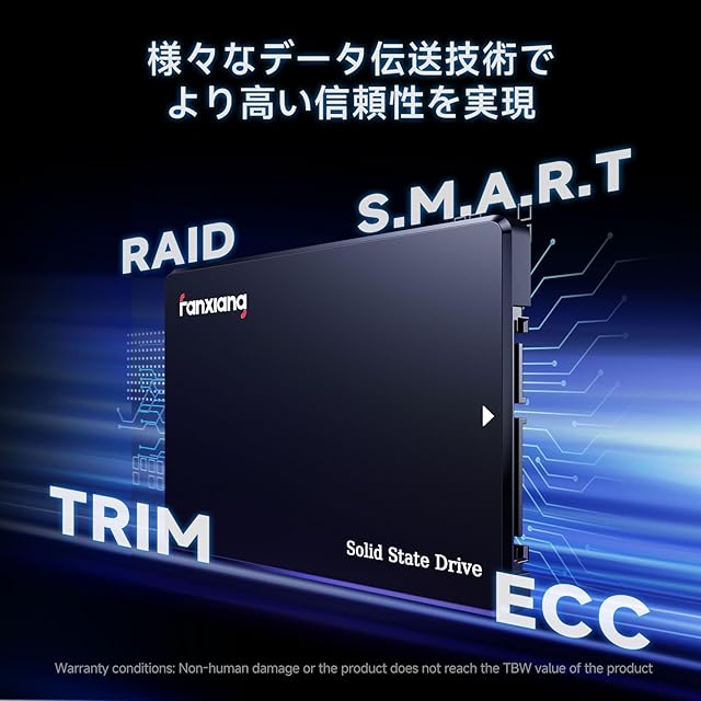 【パフォーマンスのトップを狙え SSD 】スペック上の最大読み込み速度は560MB/sで、最大書き込み速度は510MB/sです。fanxiang SATA SSDによってご使用のシステムは瞬時に起動し、ファイルもほぼ瞬時に読み込まれ、ヘビーなアプリケーションの実行も高速化されます。エラー訂正機能と信頼性の高いデータ保護機能を備えています。これにより、データの完全性が確保され、システムの信頼性が向上します。※最大転送速度は当社環境による実測値であり、すべての環境においてするものではありません。