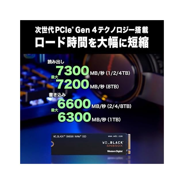 シーケンシャル読み取り : 最大7,300Mbps