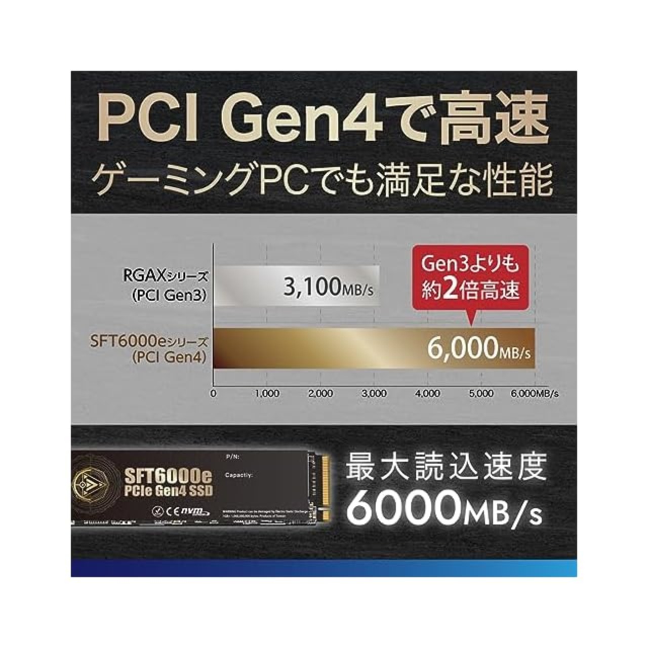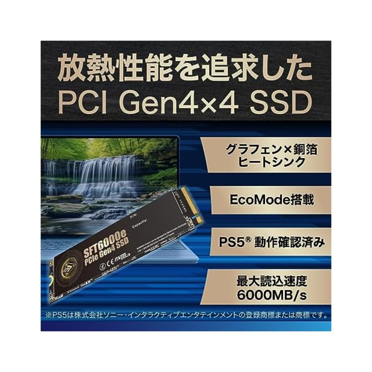 CFD SSD M.2 NVMe SFT6000e シリーズ 【 PS5 動作確認済み 】 3D NAND TLC採用 SSD PCIe Gen4×4 (読み取り最大6000MB/S) M.2-2280 NVMe 内蔵SSD 1TB (1024GB) CSSD-M2L1KSFT6KE 国内メーカー