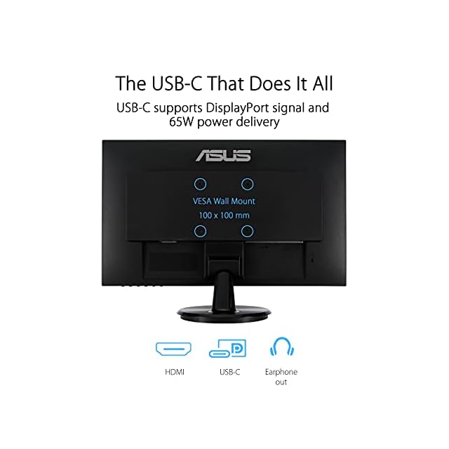 ASUS モニター Eye Care VA24DCP 23.8インチ / フルHD (1920 x 1080) / IPS / USB Type-C HDMI / 65W電力供給 / 75Hz / ブルーライト軽減 / フリッカフリー / VESA対応 / 国内正規品 | つむぎ屋
