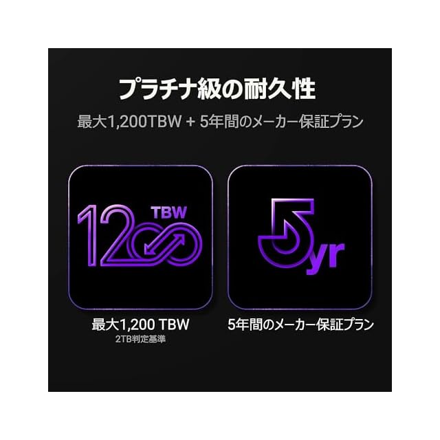 [耐久性] MTBF(平均故障間隔) 150万時間/ TBW(terabytes written) 1,200 TBW