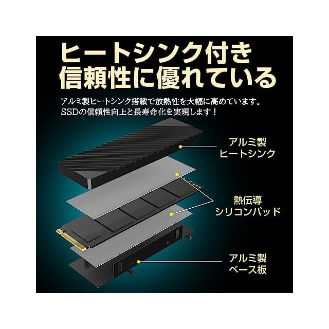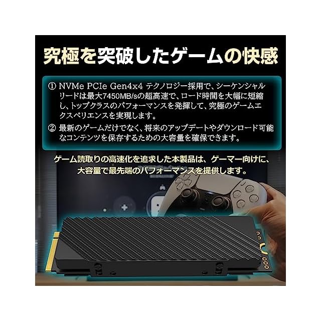 高性能ゲーミングパソコンやPS5/新型PS5向け;アルミ製ヒートシンク搭載で放熱性を大幅に高めています。PS5の限られたスペースでも、効率良く放熱を促し、ゲームソフトの強制終了や転送速度の低下を防ぎます。