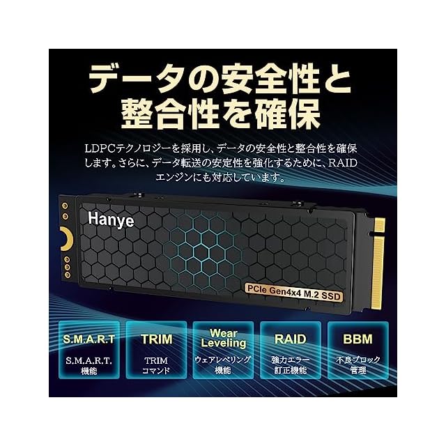 Hanye SSD 2TB PCIe Gen4x4 M.2 NVMe 2280 ヒートシンク搭載 新型PS5 PS5動作確認済み R:7450MB/s W:6700MB/s HE70 高耐久3D NAND TLC 正規代理店品メーカー5年 | つむぎ屋
