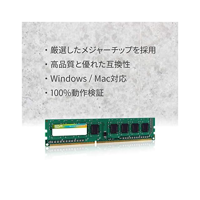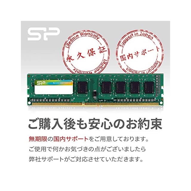デスクトップPC用低電圧タイプのメモリーです。低電圧タイプのPCでは、 1.35Vの低電圧動作により、省電力を実現、発熱の低減、システムの安定化、長寿命化に効果的です。