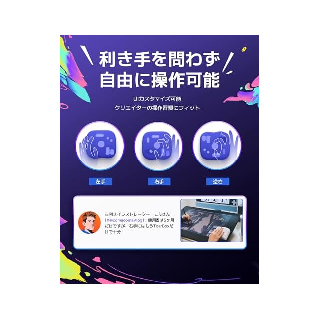 【クリエイター効率を最大化する左手デバイス】 シンプルボタンで片手ブラインド操作可能。 8ボタンで50以上の操作、200以上の機能を実現、イラスト制作・動画編集など、創作シーンをカバー。Consoleアップデートで対応ソフト追加&機能拡張。