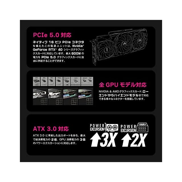 PCI Express 5.0に対応しており、12VHPWRコネクタを標準搭載。次世代のグラフィックボードにも十分な電力を供給することが可能です。