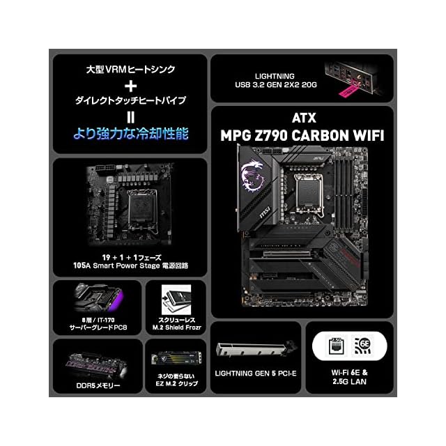 MSI マザーボード MPG Z790 CARBON WIFI 第14/13/12世代Intel CPU(LGA1700)対応 Z790チップセット ATX MB5911