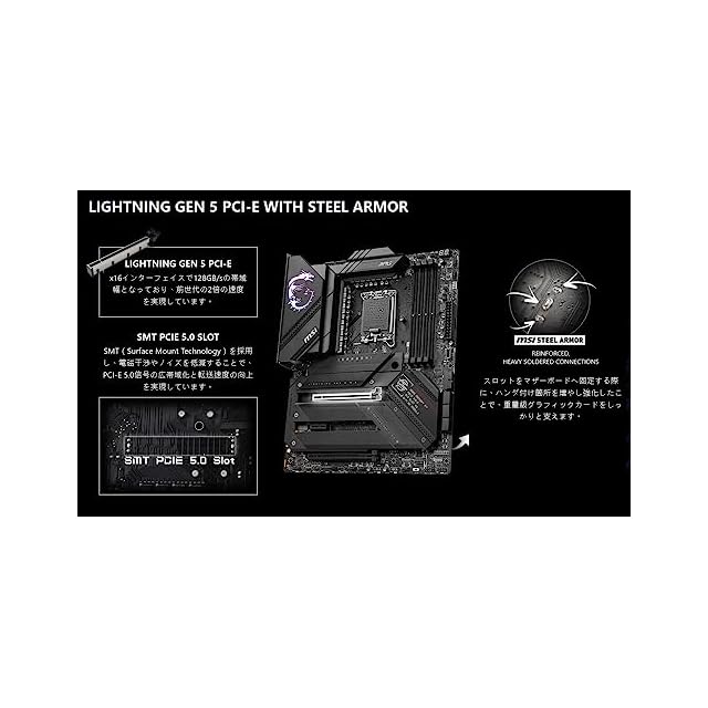 PCIe 5.0 x16スロットやM.2 Gen5スロットを搭載し、今後登場予定の最新パーツにも対応可能です。