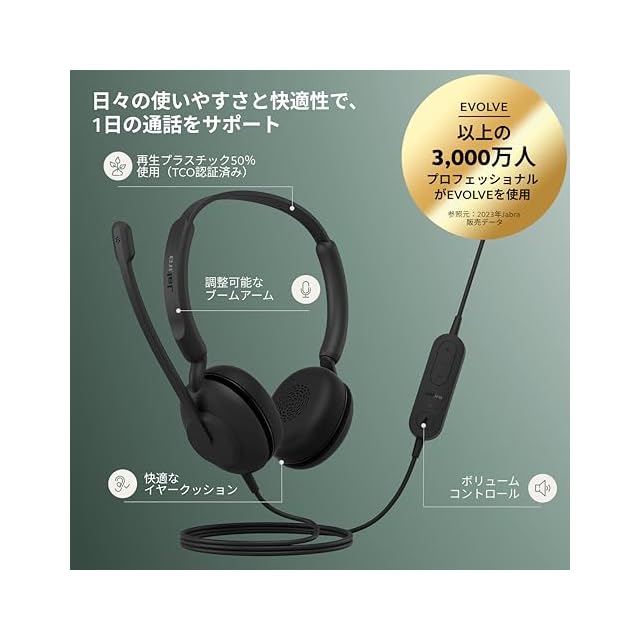 Jabra Evolve 10 USB-A Stereo 両耳ヘッドセット USB ヘッドホンマイク付き ステレオ ノイズキャンセリング 1日中快適なレザークッション 簡単接続 軽量 回転式マイクブーム 会議 | つむぎ屋