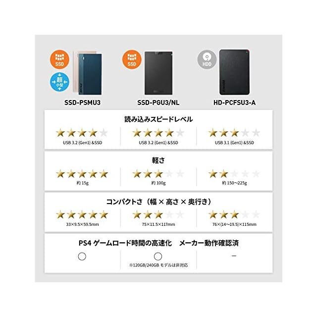 HDDより速い・強いSSD USB3.1(Gen1) & 耐振動・耐衝撃