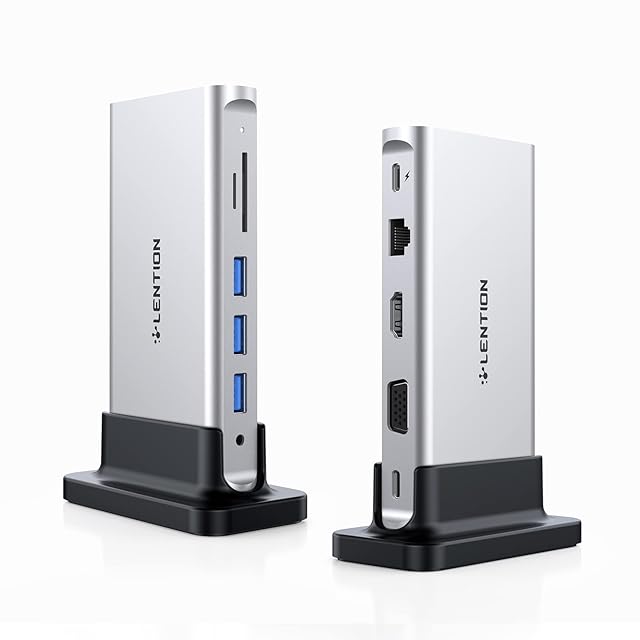 LENTION 縦置き USB C ドッキングステーション CB-D55 4K HDMI VGA USB3.0 3ポート ギガビット有線LAN SD/Micro SDカードリーダー 100W PD充電 | つむぎ屋