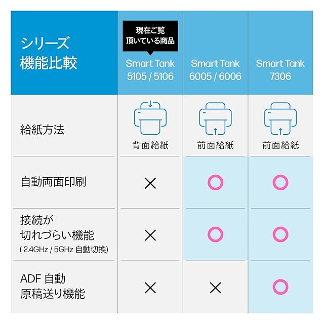 【特徴5】HP Smart Tank 5105は、インテリアに馴染むシンプルなデザインで、背面給紙を採用。用紙を頻繁に入れ替えたり、封筒を印刷する際に便利です。給紙部分には埃の侵入を防止するフラップが搭載されているため、埃などでの故障を防ぎます。 プリント速度:ISOモノクロ:約12枚/分(ドラフトモード:約22枚/分)ISOカラー :約5枚/分(ドラフトモード:約16枚/分)"