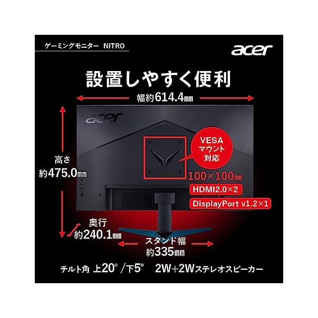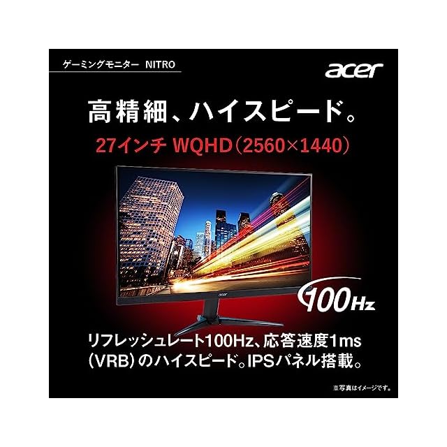 日本エイサー Acer Nitro ゲーミングモニター 27インチ IPS 非光沢 WQHD 100Hz 1ms HDMI VESAマウント対応 スピーカー内蔵 ヘッドホン端子 AMD FreeSync HDR10 VG270UEbmiipx PC/PS4/Switch向き