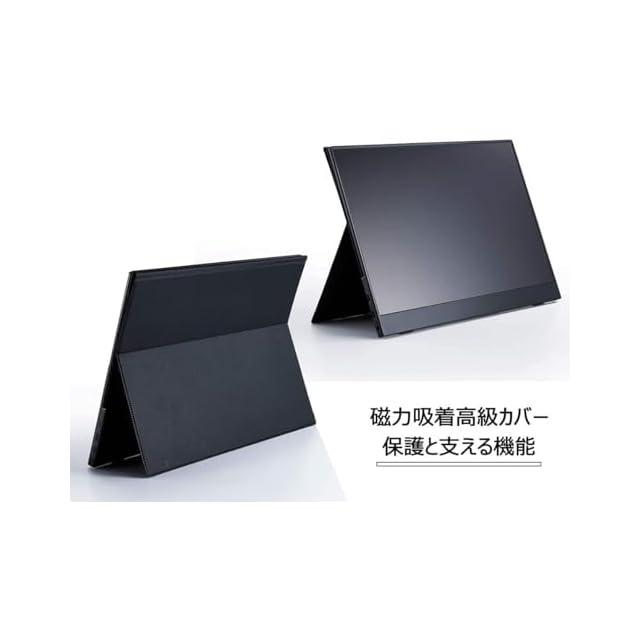 【高音質スピーカーを内蔵&スタンド付き】①モニターはスピーカーを内蔵しており、他の製品より、素敵なストリーミング、ゲーム、映像体験を実現します。2*1Wの音量スピーカーですので、よく音を出力できるのが魅力です。また、3.5mmオーディオ端子も付き、外付けスピーカーかイヤホンをつけるかお好みに合わせて選択できます。②スタンドとしても使える折りたたみ式のマーグネッド保護カバーが付属しているので、縦置きでも横置きでもしっかりと本体を支え、作業、リーディング好みによって適切な角度に調節可能です。そして、保護カバーついて本体を傷や衝撃から優しく守ります