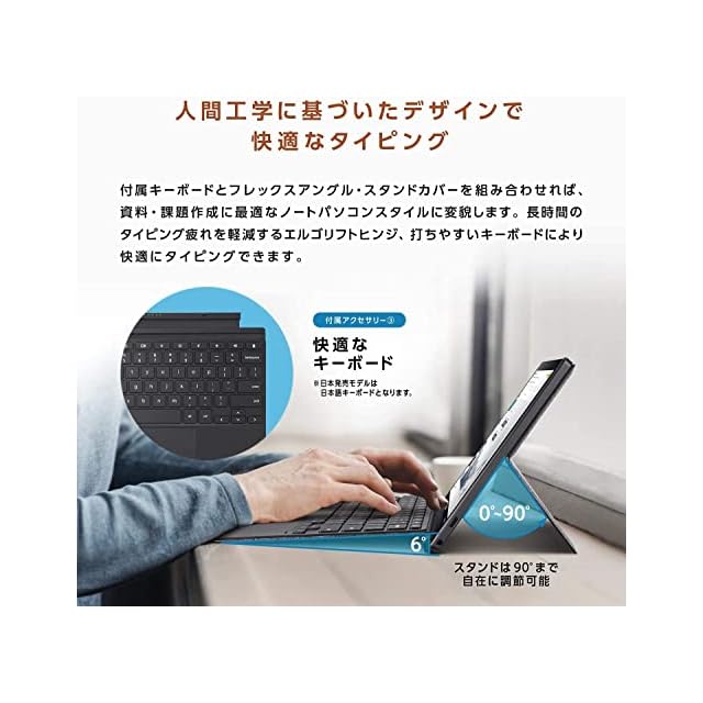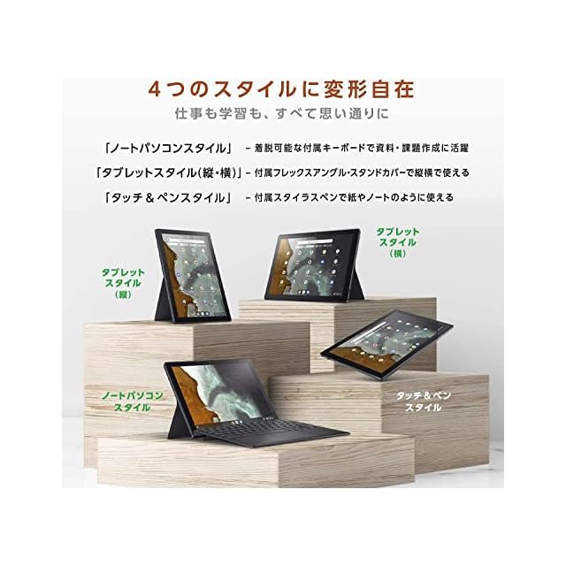 【OS 】Chrome OS【カラー】ミネラルグレー【サイズ】本体 : 幅255.44mm×奥行き167.2mm : 高さ7.9mm 約506g (本体+キーボード時:高さ13.3mm 約748g, 本体+キーボード+スタンドカバー時:高さ16.9mm 約915g)