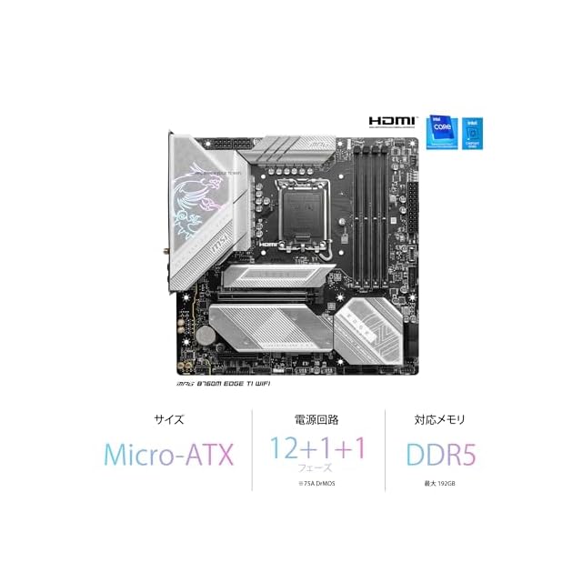 商品名:MSI MPG B760M EDGE TI WIFI intel 第14・13・12世代 Coreプロセッサ対応 LGA1700 DDR5 B760チップセット搭載 Micro-ATX マザーボード MPG B760M EDGE TI WIFI MB6464
