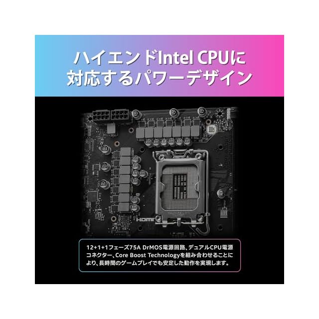 intel 第14・13・12世代 Coreプロセッサに対応、DDR5メモリとPCIE5.0スロットを備えた最新アーキテクチャMicro-ATXマザーボード。
