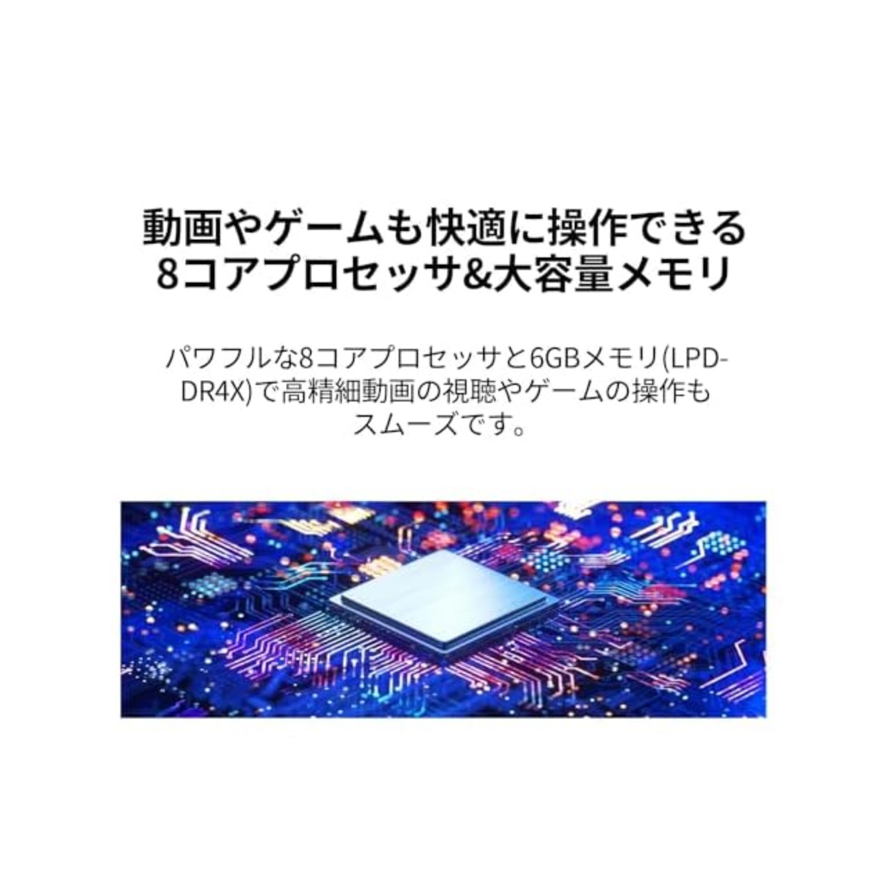 メモリ:6GB(LPDDR4X)★通信機能 :無線LAN(IEEE802.11ac/a/b/g/n準拠)、Bluetooth テクノロジー本体内蔵(Ver.5.1)★LTE/3G (ワイヤレスWAN):-★