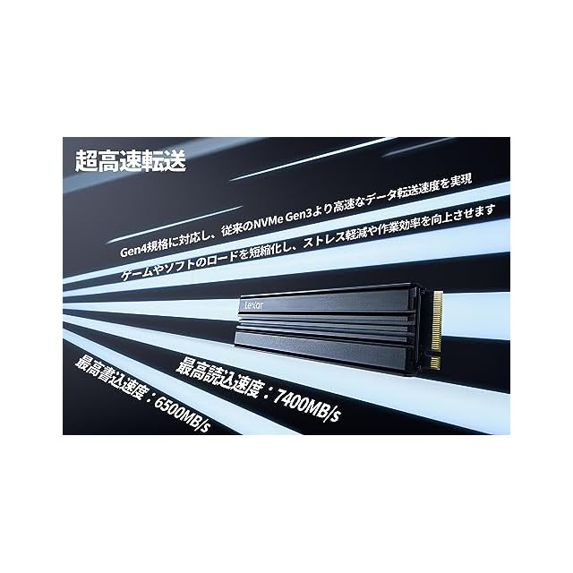 商品名:Lexar SSD PCIe Gen4x4 M.2 NVMe 2280 ヒートシンク搭載 PS5動作確認済み R:7400MB/s W:6500MB/s NM790 高耐久3D NAND 国内正規品 メーカー5年 4TB