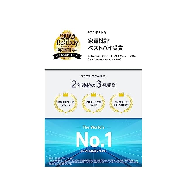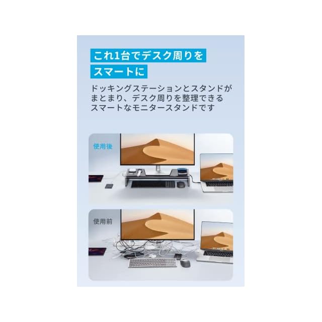 商品名:Anker 675 USB-C ドッキングステーション (12-in-1, Monitor Stand, Wireless) モニタースタンド ワイヤレス充電 100W USB PD対応 4K HDMIポート microSD&SDカードスロット 3.5mmオーディオジャック イーサネットポート 10Gbps USB-C USB-Aポート搭載 高速データ転送