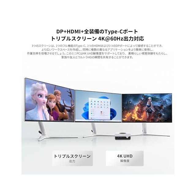 【4K HD 三画面出力|効率アップ&高画質映像の楽しみ】Larkbox X Intel-N100ミニpcはHDMI+DP+全功能TYPE-Cで三画面同時出力をサポートする。Intel UHDグラフィックスを搭載、解像度は4K@60Hzと高く、4K超高精細動画再生に対応し、画像処理はよりスムーズで、4K ビデオの再生速度もより高速。ミニpc windows11 最新,クラス最高の TV 体験、本物そっくりの画質、複数のワークスペースを拡張することで生産性が2倍になる。ビジネス、オンライン教育、自宅ワーク、テレワークなど多くの場面に適し、同時に複数のタスクを遂行することができる。銅製ヒートシンク、専用SSD冷却シールドが含まれるアップグレードされた冷却システムも搭載しています。