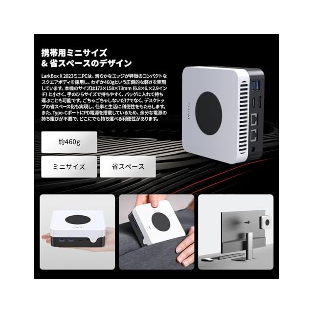 商品名:ミニPC第12世代インテル N100 Windows11 CHUWI LarkBox X DDR5 12GB+512GB Mini PC 4コア/4スレッド 最大3.4 GHz WIFI6 4K@60Hz 出力DisplayPort BT5.2/RJ45*2/Type-A/Type-C/USB*4 /HDMI 静音性 小型デスクトップ 超小型mini PC ミニパソコン2.5G