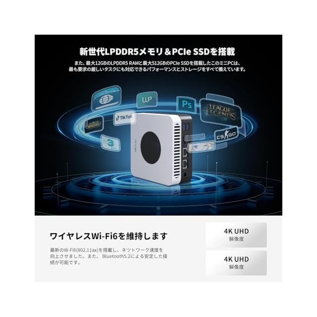 VESAマウントキットは付属しています。【DDR5 12GB+512GB SSD】を搭載したこのミニPCは、優れたパフォーマンスとスムーズな動作を提供し、遅延を減らして複数のタスクを同時に実行できます。また、M.2 2280 SATA3 SSDは最大1TB(別売)までストレージアップグレードもサポートしております。