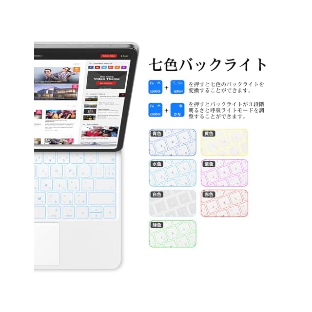 商品名:マジックキーボード GOOJODOQ iPad Pro 12.9インチ スマートキーボード iPad Pro 12.9 2018第三世代/2020第四世代/2015第五世代適用 トラックパッド付きケース 7色バックライト 日本語配列キーボード カバー 日本語説明書 ホワイト