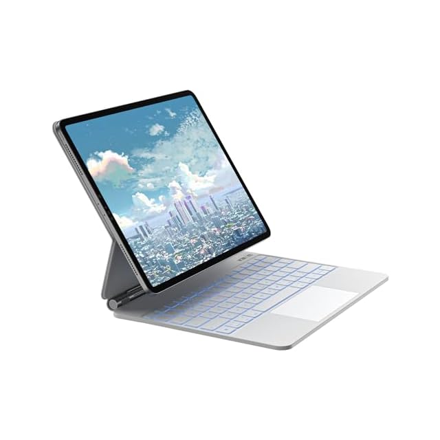 マジックキーボード GOOJODOQ 2024 iPad Air6(M2) 13inch対応スマートキーボードiPad Pro 12.9inch 2018第三世代/2020第四世代/2021第五世代適用/2022第六世代 トラックパッド付きケース 7色バックライト 日本語配列キーボード カバー 日本語説明書 ホワイト