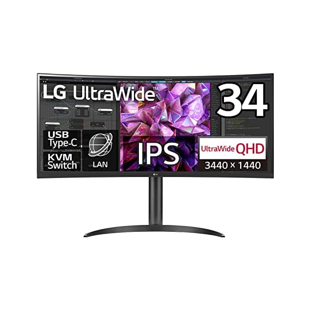 商品名:LG モニター ディスプレイ 34WQ75C-B 34インチ/曲面型ウルトラワイド(3440×1440)/IPS アンチグレア/HDR/LAN端子/KVMスイッチ/HDMI×2,DisplayPort×1/フリッカーセーフ、ブルーライト低減 /3年安心・無輝点