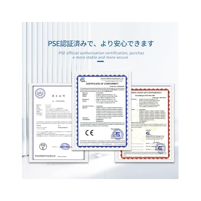 弊社全品日本(電気用品安全法)、ヨーロッパCE安全法に適合、アメリカFCC承認取得 ご注意:ご購入前に、パソコンと純正バッテリーの型番を確認する必要となります。