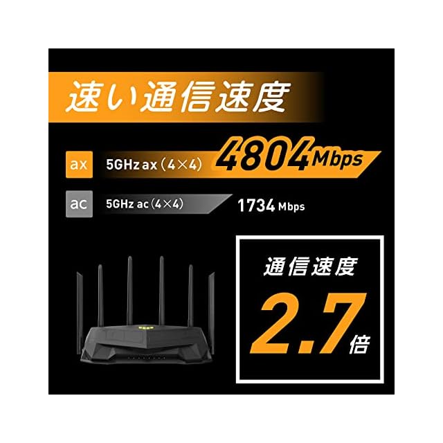 商品名:ASUS WiFi 無線 ルーター WiFi6 4804+574Mbps v6プラス対応デュアルバンドゲーミング TUF-AX5400 (A) メッシュ機能付 3階建 / 4LDK PS5/Nintendo Switch/iPhone/android 対応