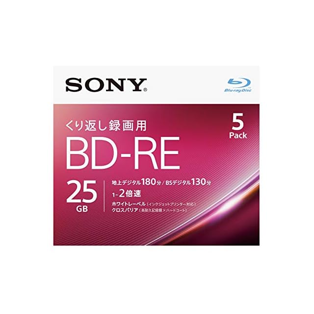 商品名:ソニー 日本製 ブルーレイディスク BD-RE 25GB (1枚あたり地デジ約3時間) 繰り返し録画用 5枚入り 2倍速ダビング対応 ケース付属 5BNE1VJPS2