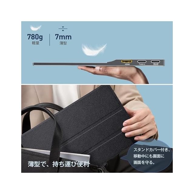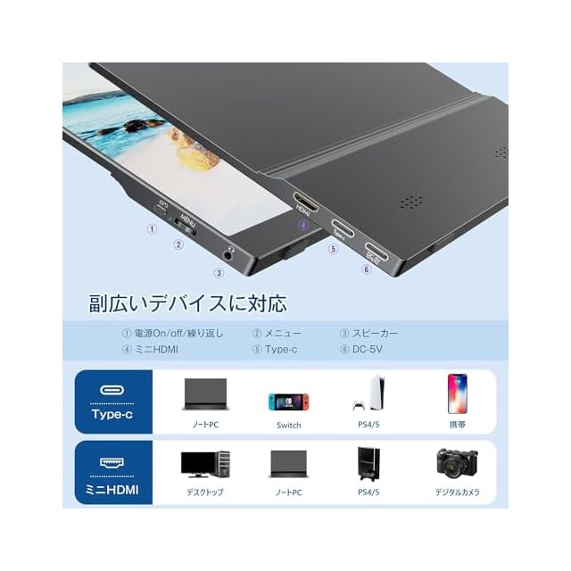 商品名:モバイルモニター 15.6インチ ディスプレイ 1920x1080FHD ゲーミングモニター スイッチ用 非光沢IPSパネル高輝度400nits HDRモード対応 薄型 スピーカー内蔵 標準HD/USB-A/Type-C/mini HDMI端子 ブラック 156DM2