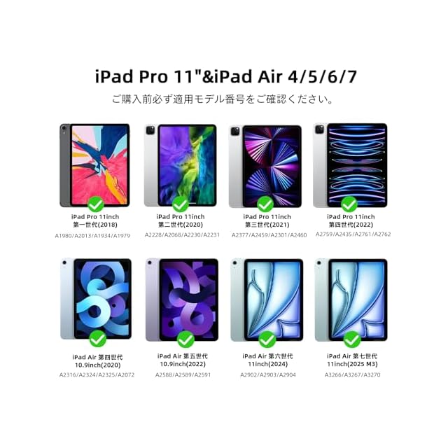 【購入前のご注意】GOOJODOQ マジックキーボードは2024 iPad Air6(M2)11inch、iPad Air4/5 10.9inch、iPad Pro 11inch(4/3/2/1)に通用します。※iPad Pro11 11インチ(M4)2024は適用しません。ご購入前に必ずご確認ください。適用モデル番号は最新2024 iPad Air第6世代11インチ、2020-2022iPad Air第5/4世代(A2588/A2589/A2591/A2316/A2324/A2325/A2072)、2018-2022 iPad Pro11第4/3/2/1世代(A2759/A2435/A2761/A2762/A2377/A2459/A2301/A2460/A2228/A2068/A2230/A2231/A1980/A2013/A1934/A1979)です。特別の日本語配列設計、iPadに設置だけで、日本語かな入力、ローマ字入力を切り替えることができます。入力習慣が違い人にも一つのキーボードを利用することができます。自宅用、仕事用だけでなく、プレゼントとしても最適です。