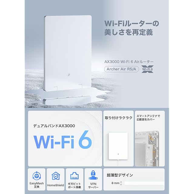 商品名:TP-Link WiFi 無線LAN ルーター AX3000規格 2402+574Mbps EasyMesh VPNサーバー スマートアンテナ Archer Air R5/A
