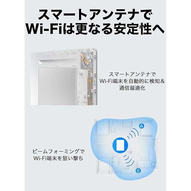 [スマートアンテナ] 内蔵アンテナにはハイレベルなスマートアンテナを搭載。Wi-Fi子機側を高度なアルゴリズムで探し当て、効率的かつ安定的な通信を実現
