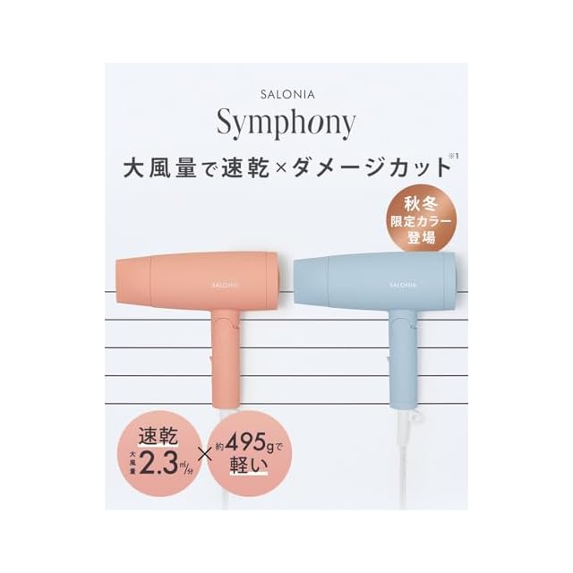 [2023年秋冬限定] SALONIA サロニア | スピーディーイオン ドライヤー 【シンフォニーオレンジ】 ヘアドライヤー 大風量 速乾 軽量 マイナスイオン 折り畳み式 冷温3段階調整 SL-013SO | つむぎ屋