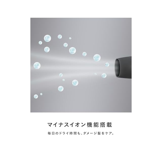 【髪にやさしいマイナスイオン機能】髪にやさしいマイナスイオンを発生。髪をいたわりながら乾かします。
