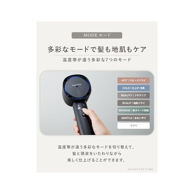 搭載モード:HOT/SENSING/BEAUTY/SCALP/COLD/GENTLE/APP(アプリ対応)