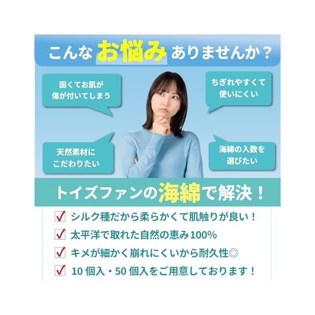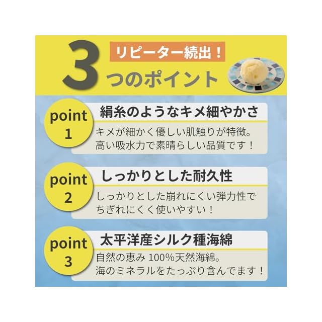 キメが細かく崩れにくい弾力性、海のミネラルをたっぷり含み使い心地抜群ですので、デリケートな女性も安心してお使い頂けます。100%天然・高品質のロングセラー商品です。