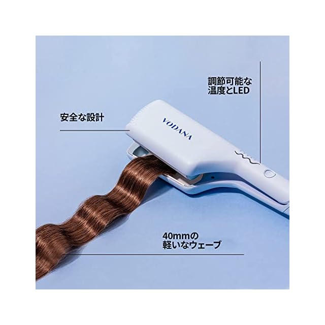 VODANA トリプルフローウェーブアイロン【日本正規品】【日本仕様プラグ】挟むだけ ウェーブアイロン ヨシンモリ くびれ巻き 韓国風ヘア ダメージ最小化 (40mm, クリーミーブルー) | つむぎ屋