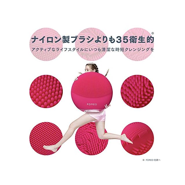 速乾性に優れたシリコーンの製品設計でバクテ リアの発生を防ぎ、ナイロン製の洗顔ブラシよ りも35倍衛生的*