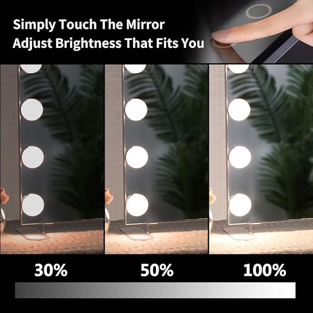 【LEDスマート化粧鏡】LED電球付き化粧鏡はスマートタッチボタンを提供します。短く押すと色が変更され、長く押すと明るさが変更されます。再度オンにすると、メモリ機能は同じライト設定のままになります。