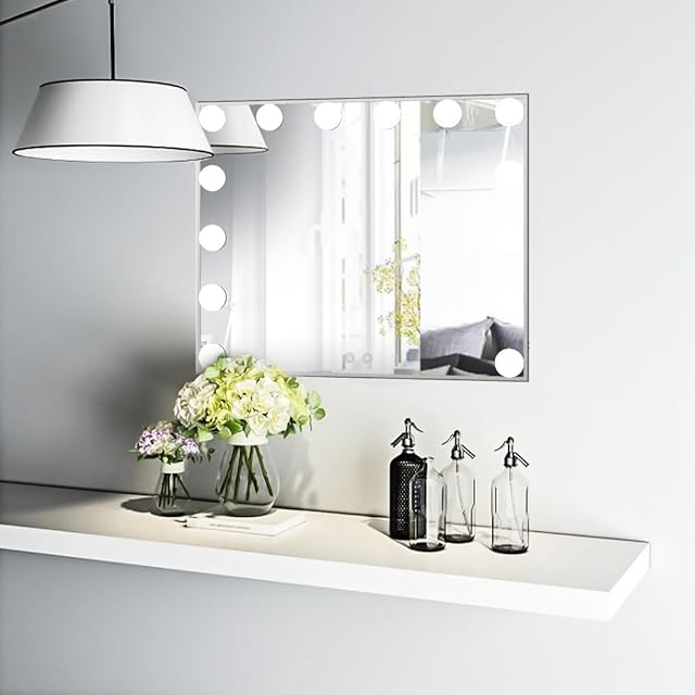 【完璧なサイズ】:女優ミラーのサイズは72*54.2 cmで、高精細な鏡はあなたの顔をはっきり反射することができて、鏡の周りの12個のLDE電球は顔全体を照らすことができて、塗るのは均一で、影がありません。
