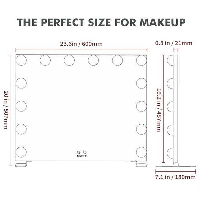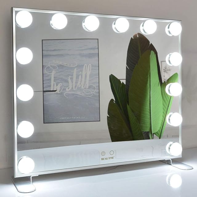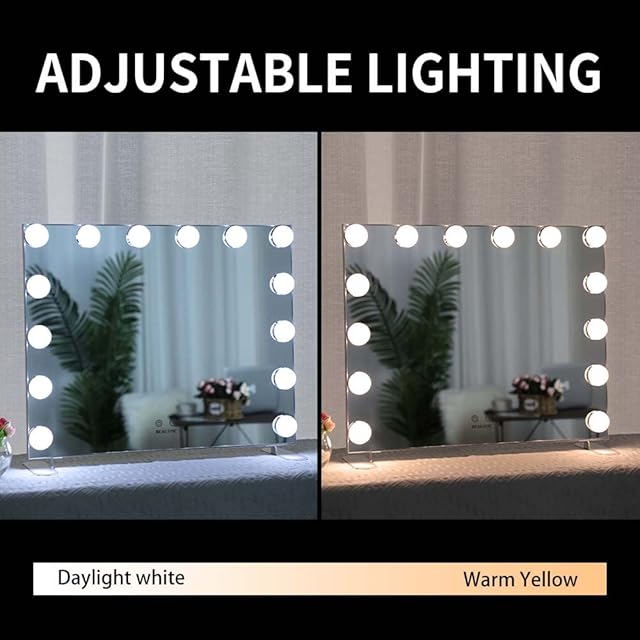 【パーフェクトサイズ】19.69 x 23.62インチハリウッド化粧鏡は、すべての化粧と服装のニーズに対応します。大きな鏡のエリアは顔と体を十分に見せることができ、周りには14個のLED電球があり、影のないメイクをすることができます。