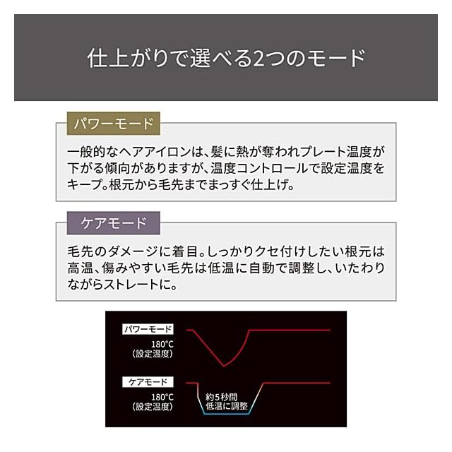 温度幅60~210℃の5℃刻み31段階の細やかな温度調節が可能。髪質やダメージ状態に合わせて温度が選べます。電源ONから18秒※3で立ち上がるから、忙しい朝でも快適にご利用いただけます。※3 100℃到達時間(最高温度設定時)