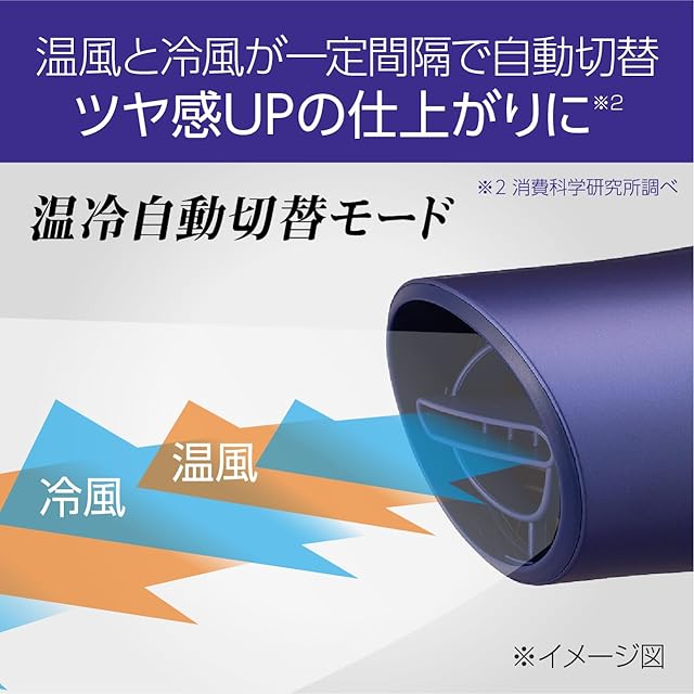 温冷自動切替モードで、温風と冷風が一定の間隔で自動切替。熱ダメージを抑えながらツヤ感とまとまりのある髪へ。
