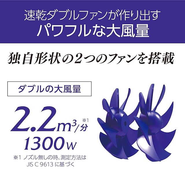大風量2.4㎥/分。速乾と地肌へのいたわりを兼ね備えた上位モデル。