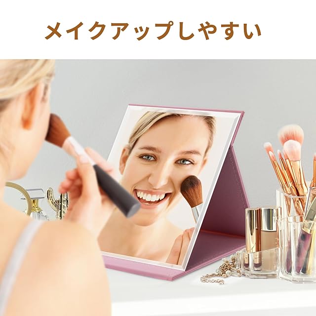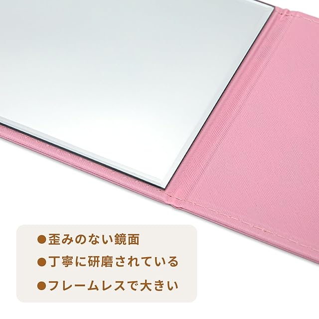 【自由に角度調整】卓上鏡はスタンドつきますから、テーブルの上に立てられて、手を使わずに鏡を見えます。裏側に手触りのザラザラな素材を使って、自由に角度を調整できます。とにかく映る範囲を最大にしたフレームレス設計で最適な視野を確保できます。